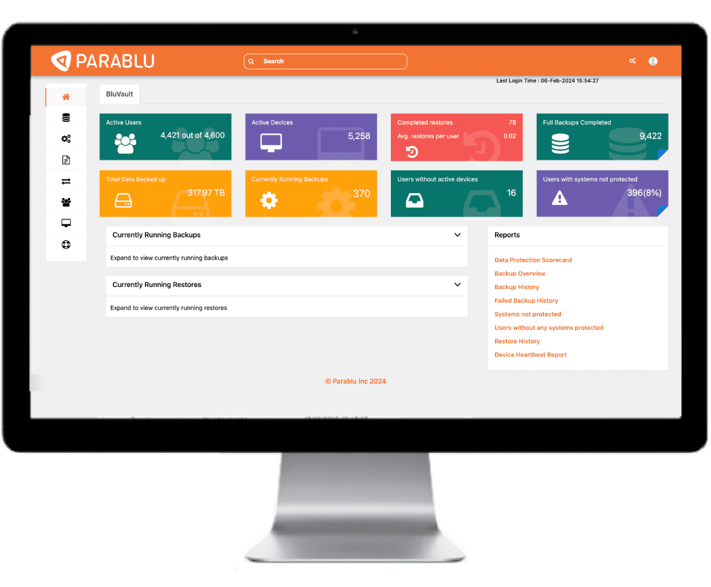 BluVault – a cutting-edge data backup and recovery solution by Parablu. Innovatively designed for precision and reliability, BluVault empowers enterprises to secure, manage, and retain their data with unmatched efficiency and meet compliance requirements.